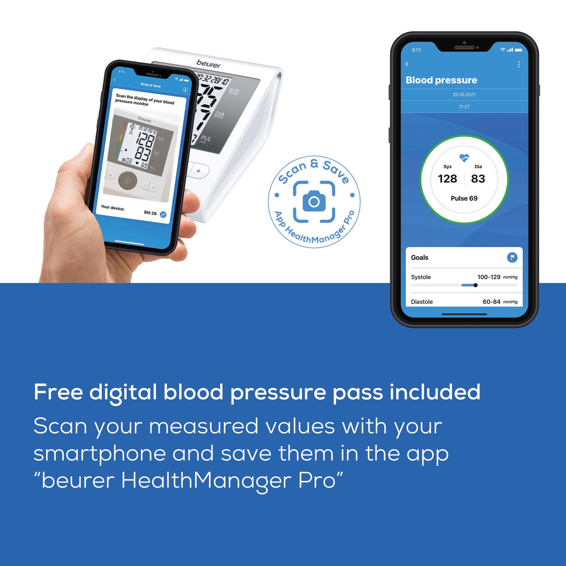 - Digitally record blood pressure values in the “beurer HealthManager Pro”