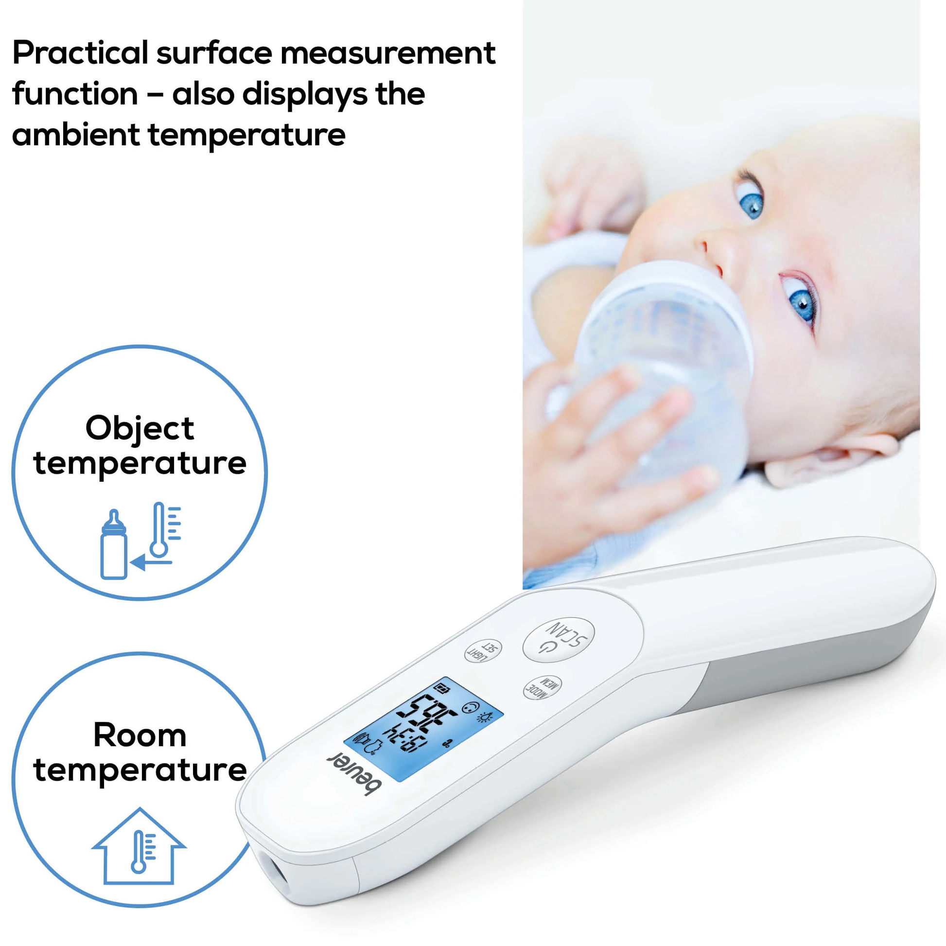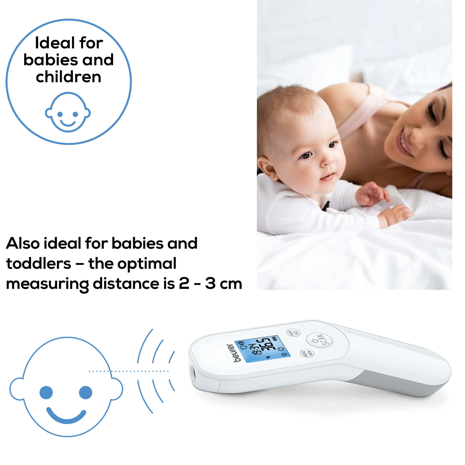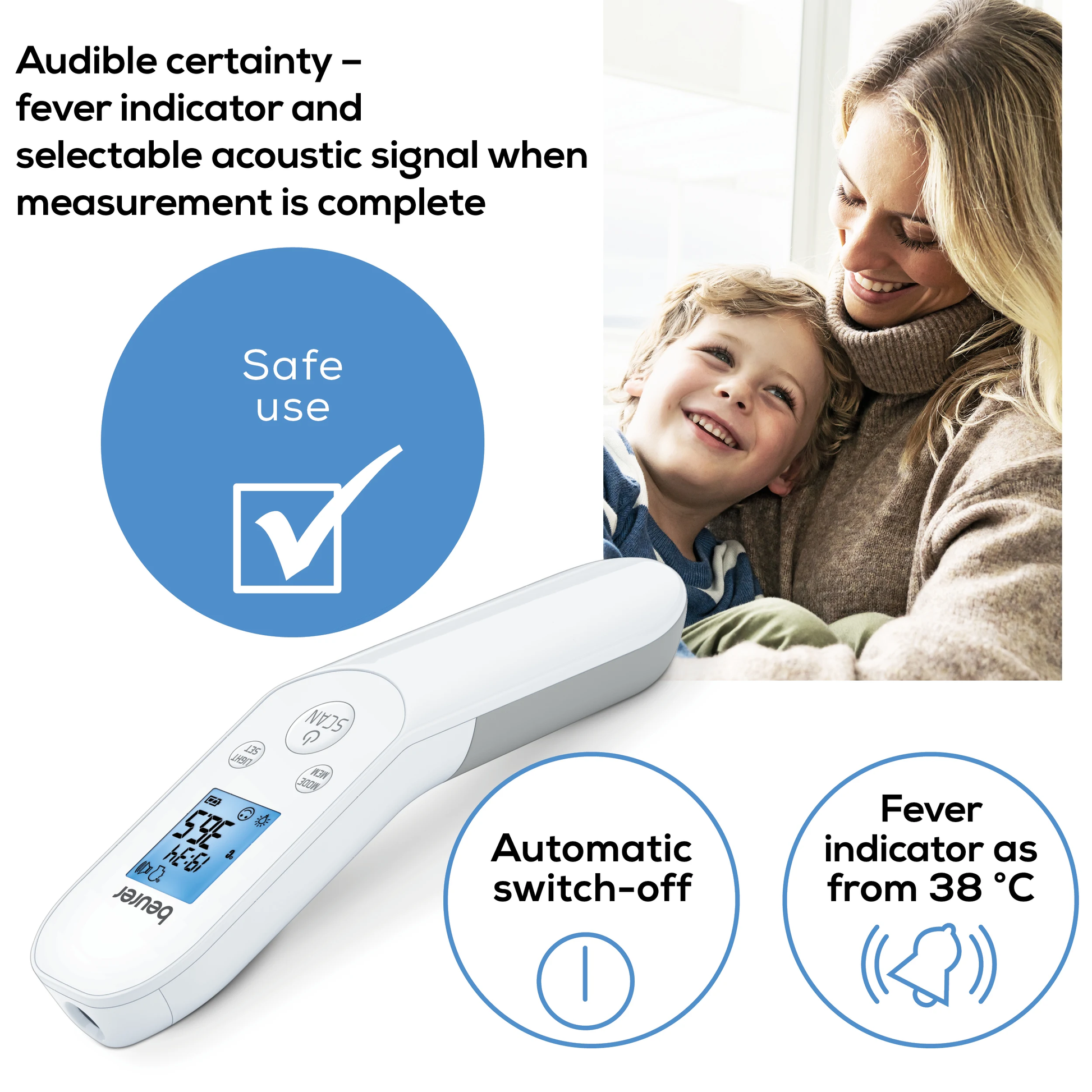 - Silent mode: Ideal for measuring the temperature while you sleep