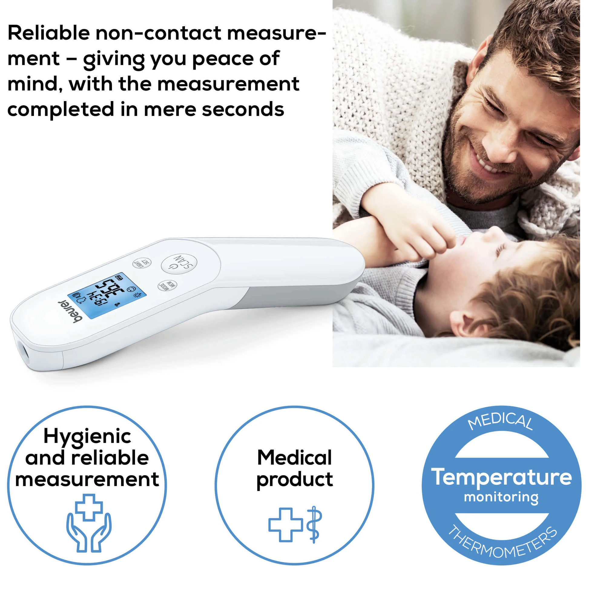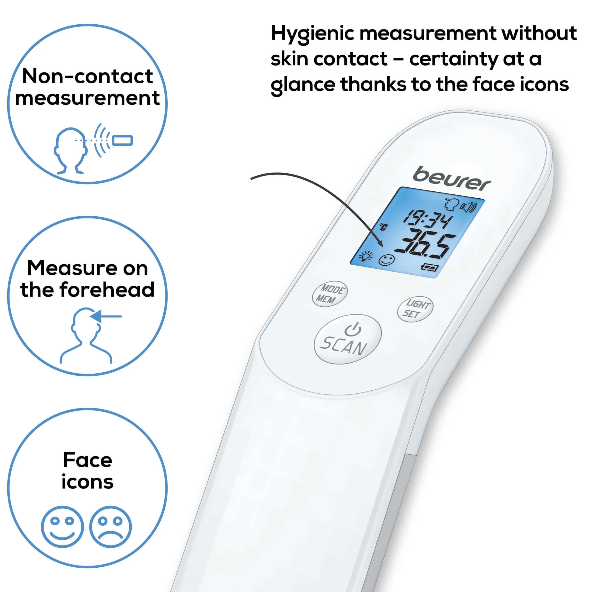 - Hygienic and safe – measurement without skin contact